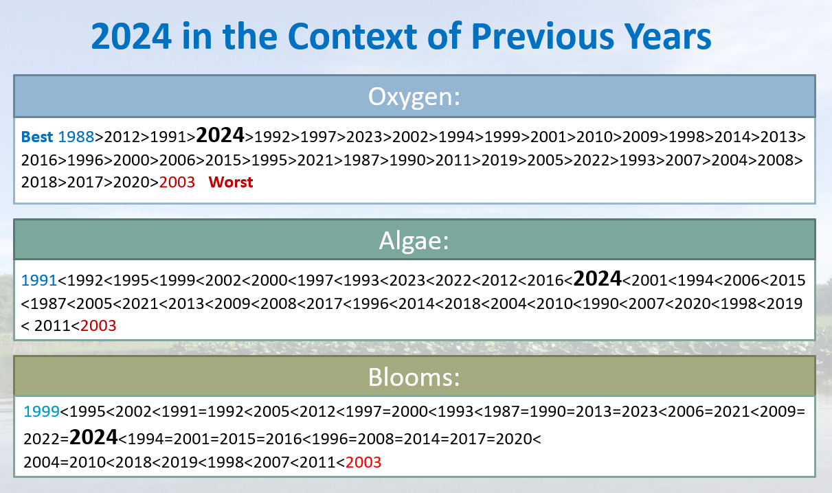 Read the full 2024 tidal water quality report or view the 2024 presentation. Data for the last few years are below but additional datasets may be requested from the Department of Planning & Zoning (please allow two weeks for processing).